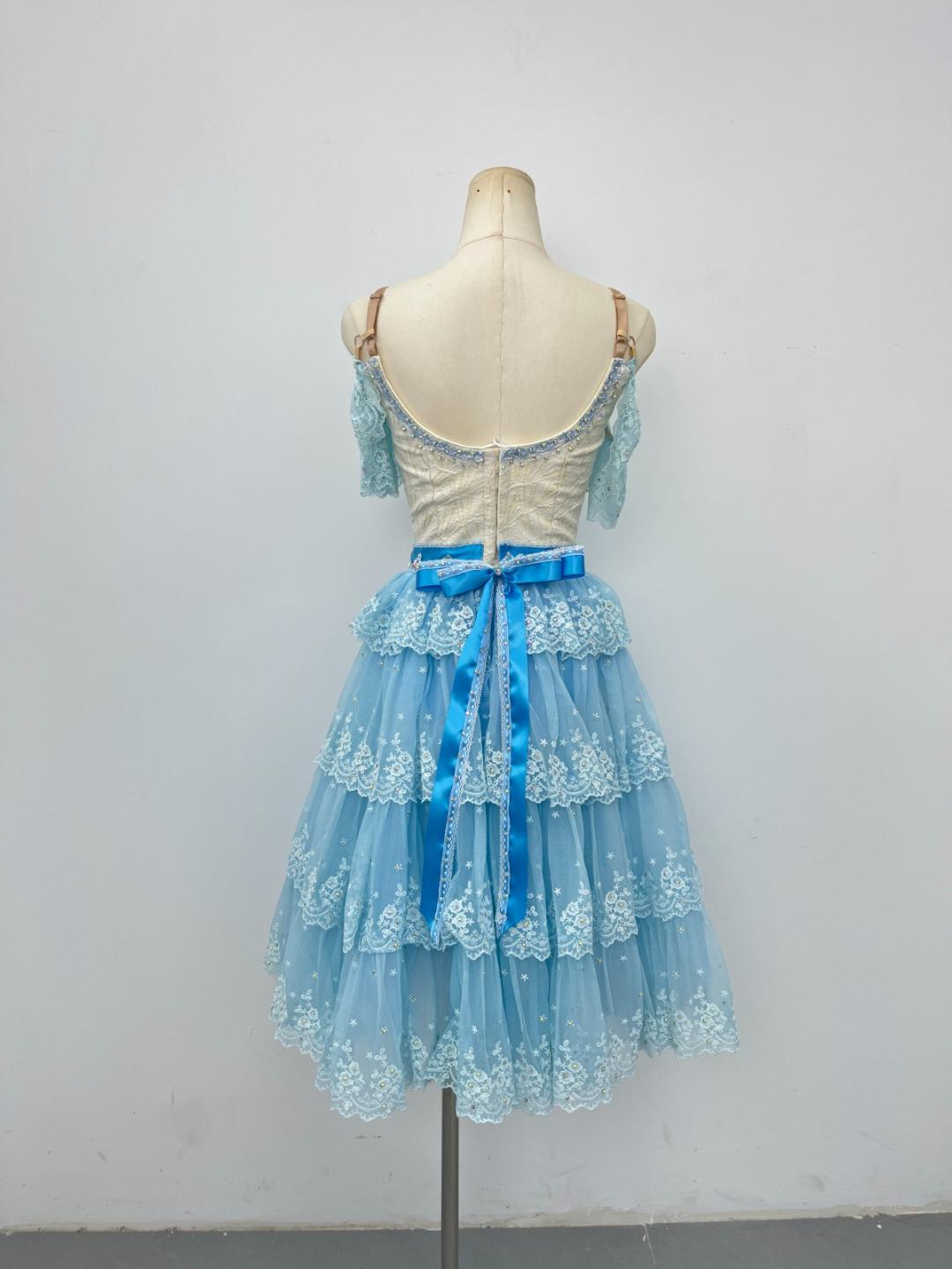 The rest of the dress is made of different layers of sky blue lace, and tulle underneath, creating a very impressive effect on stage.