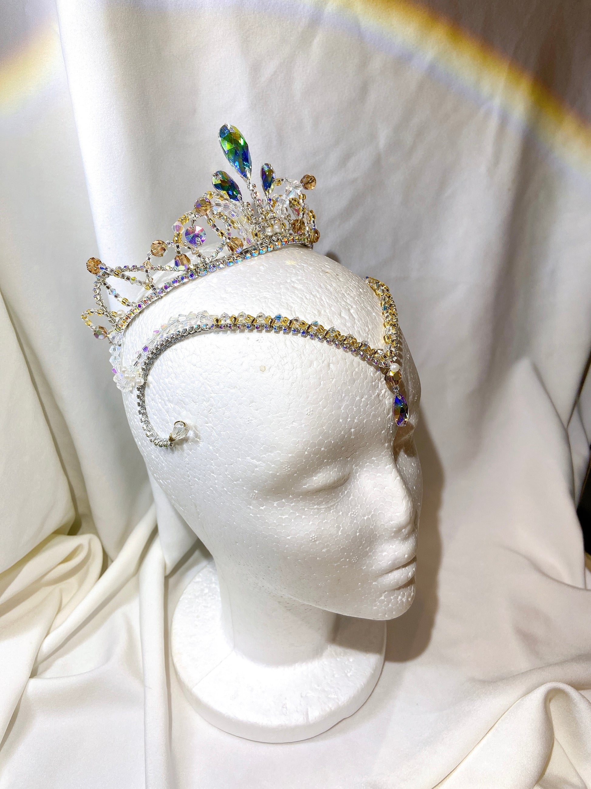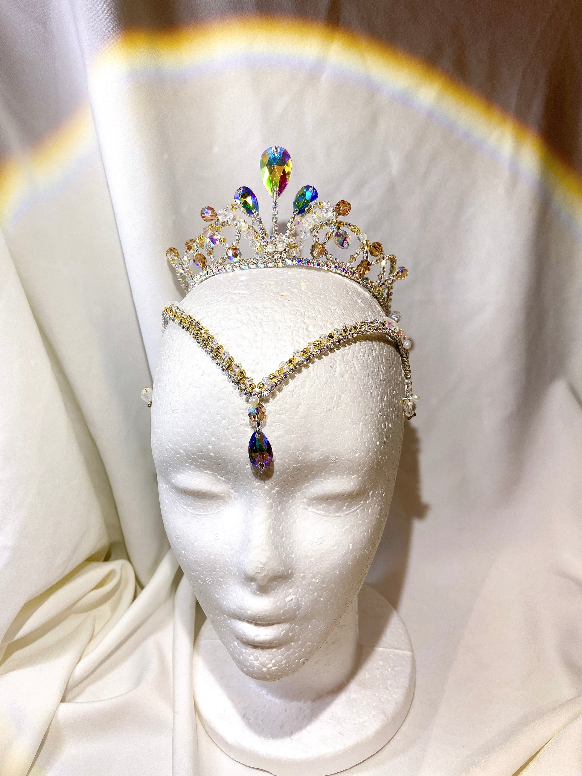 This stunning, oriental looking tiara, was created using Swarovski Crystals Aurora. It shines dazzlingly and enhances the look of any ballet tutu.