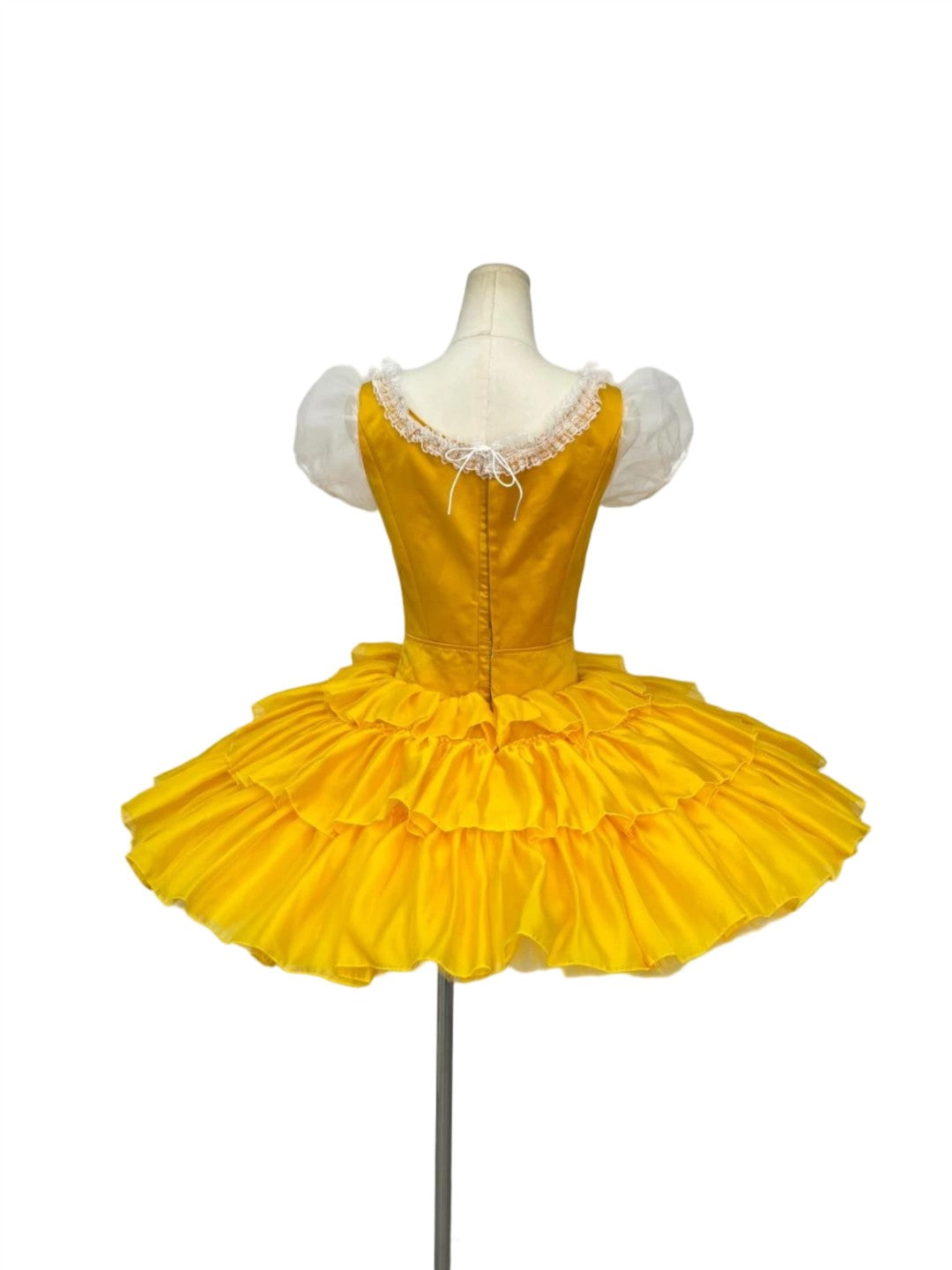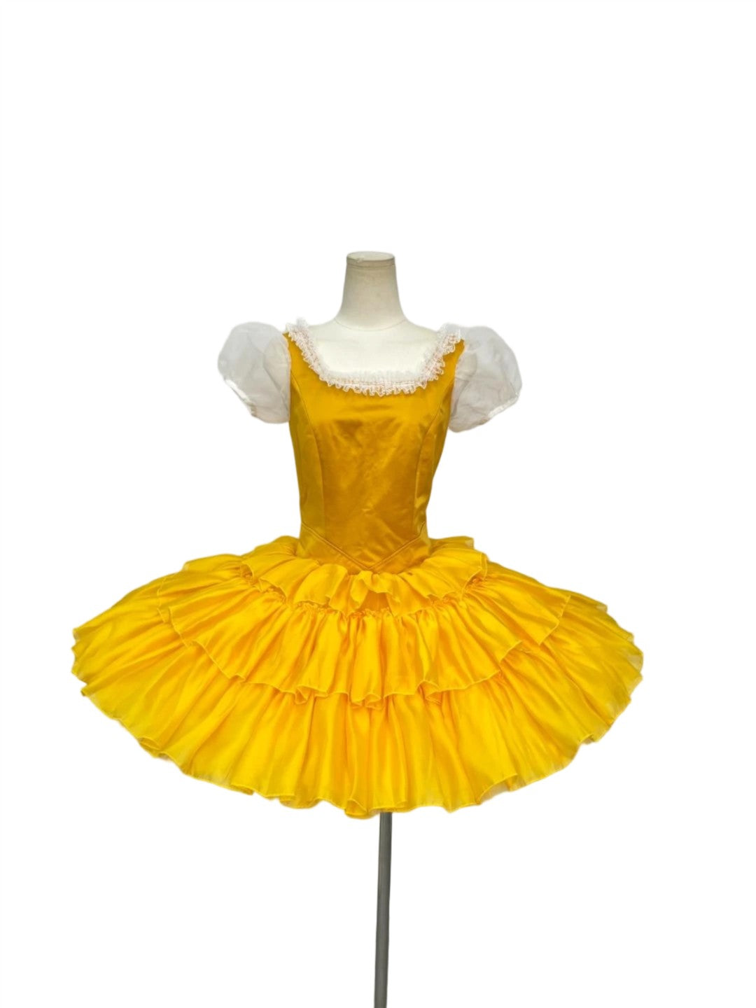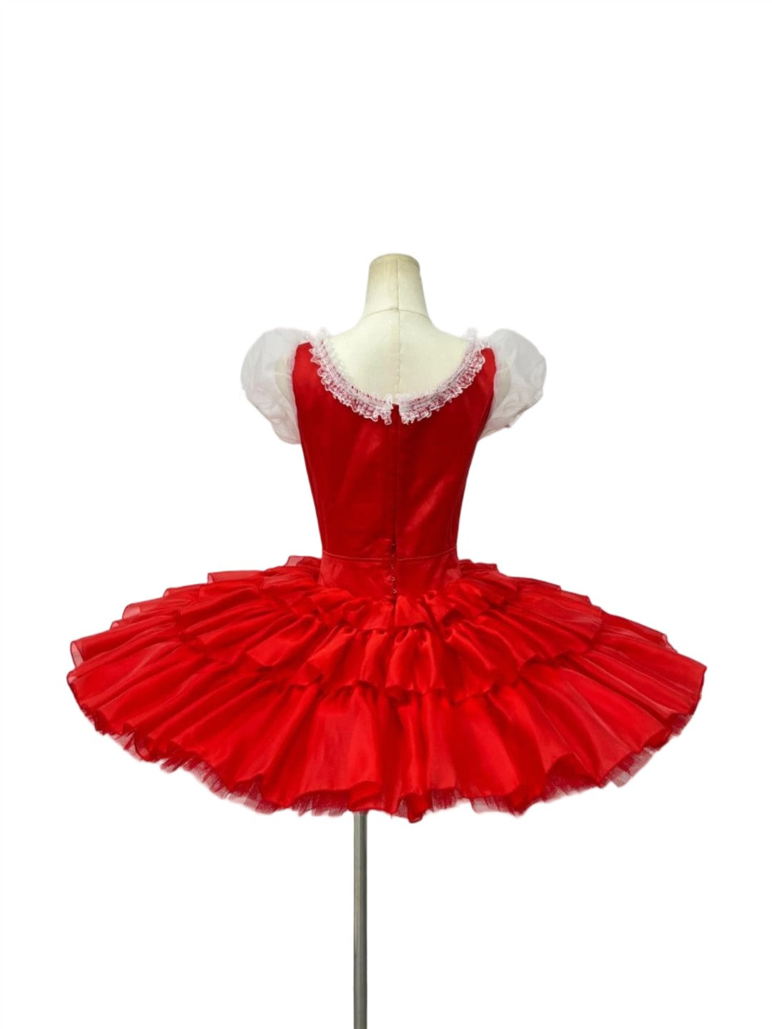 The professional, hooped tutu skirt, features matching met and a top layer made with three layers o satin matching the bodice.