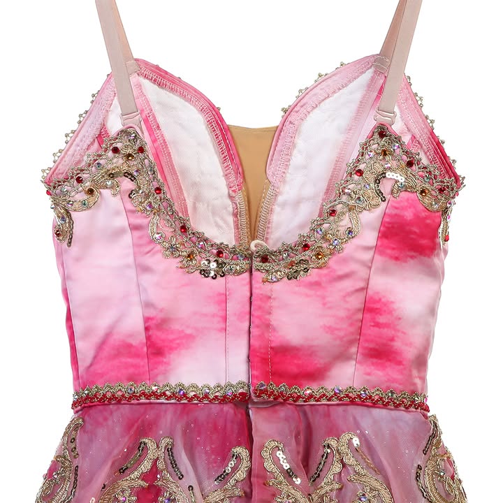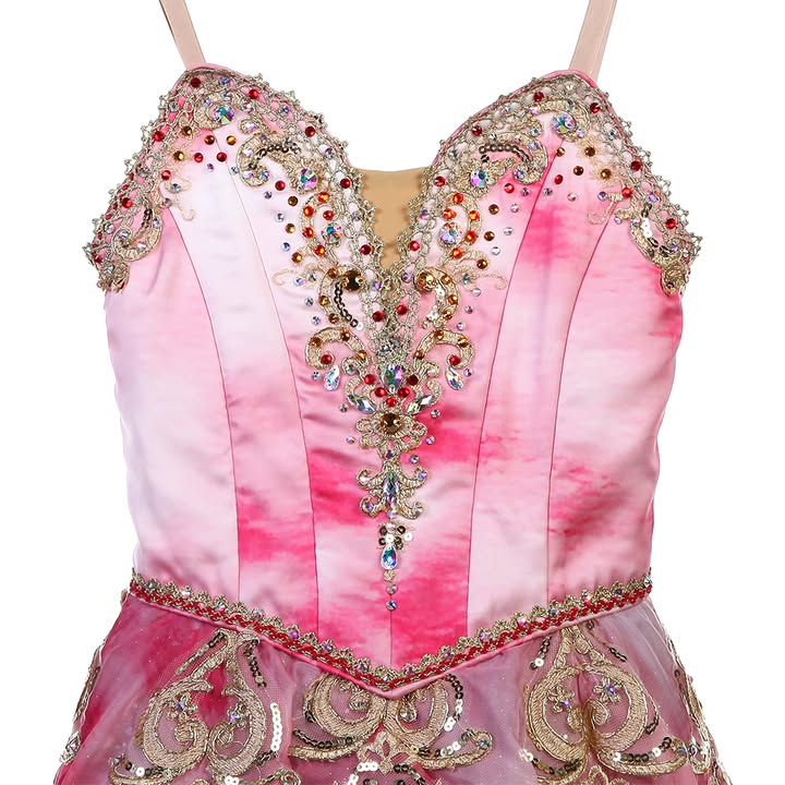 The costume is ombre' dyed in gradient colors of hot pink, and made by a famous designer for Dancewear by Patricia.